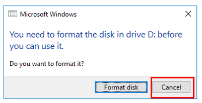 * If the message box appears, click "Cancel".