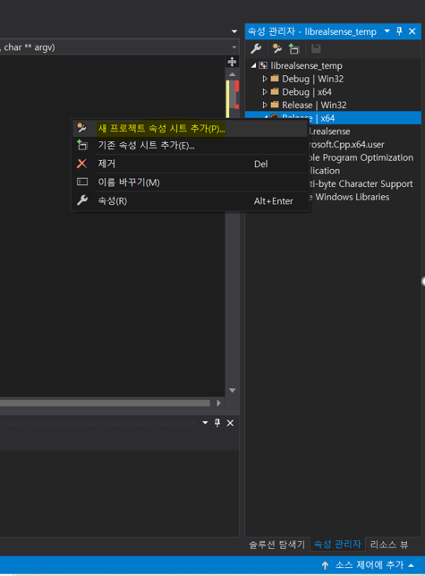 - "속성 관리자" > Release 64에서 새로운 속성시트를 생성해주세요. (PCL_Release_x64.props)