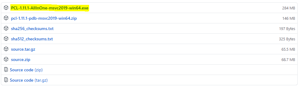 - github 접속 후, PCL AllInOne 파일을 다운 및 설치해주세요.