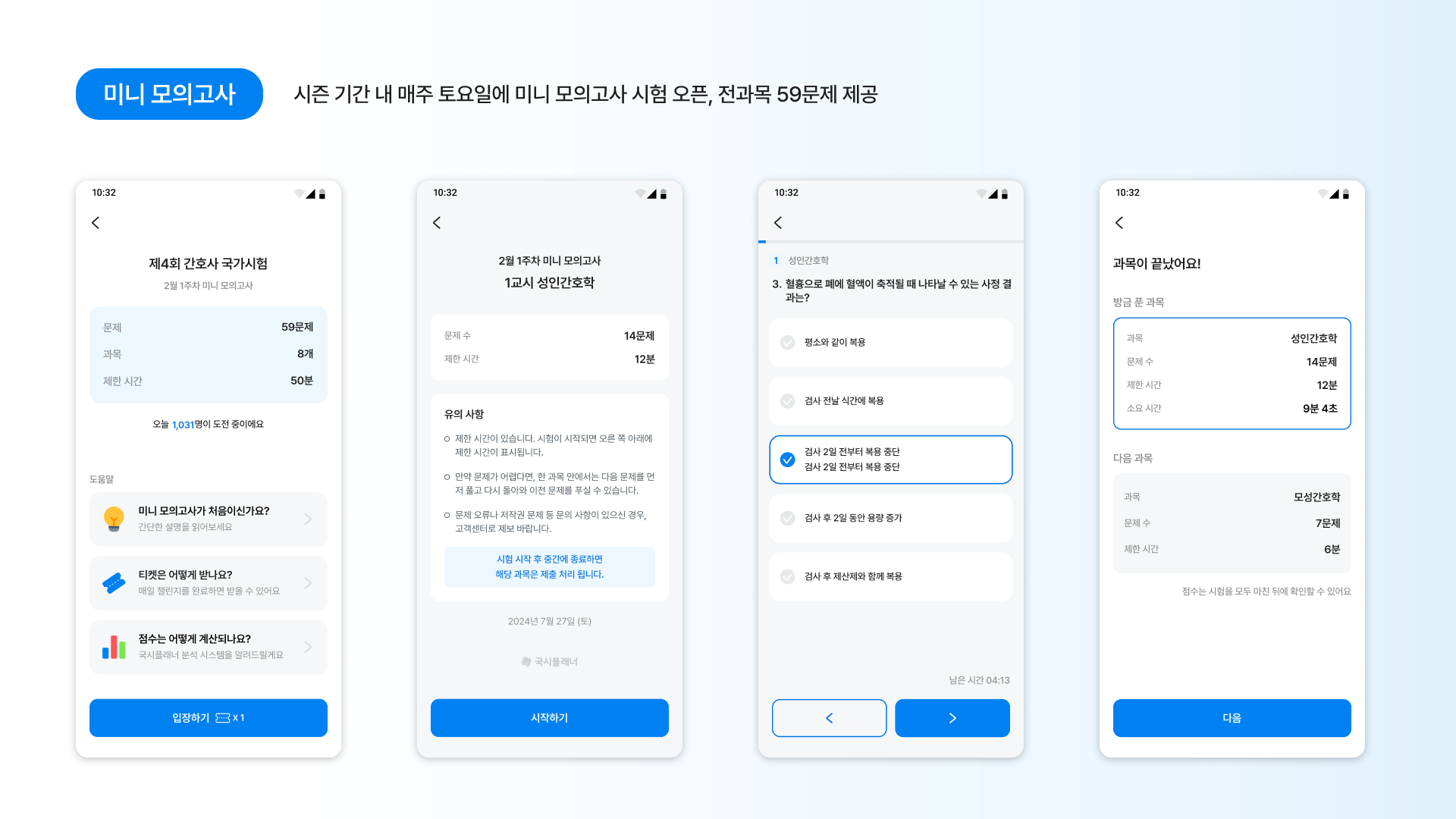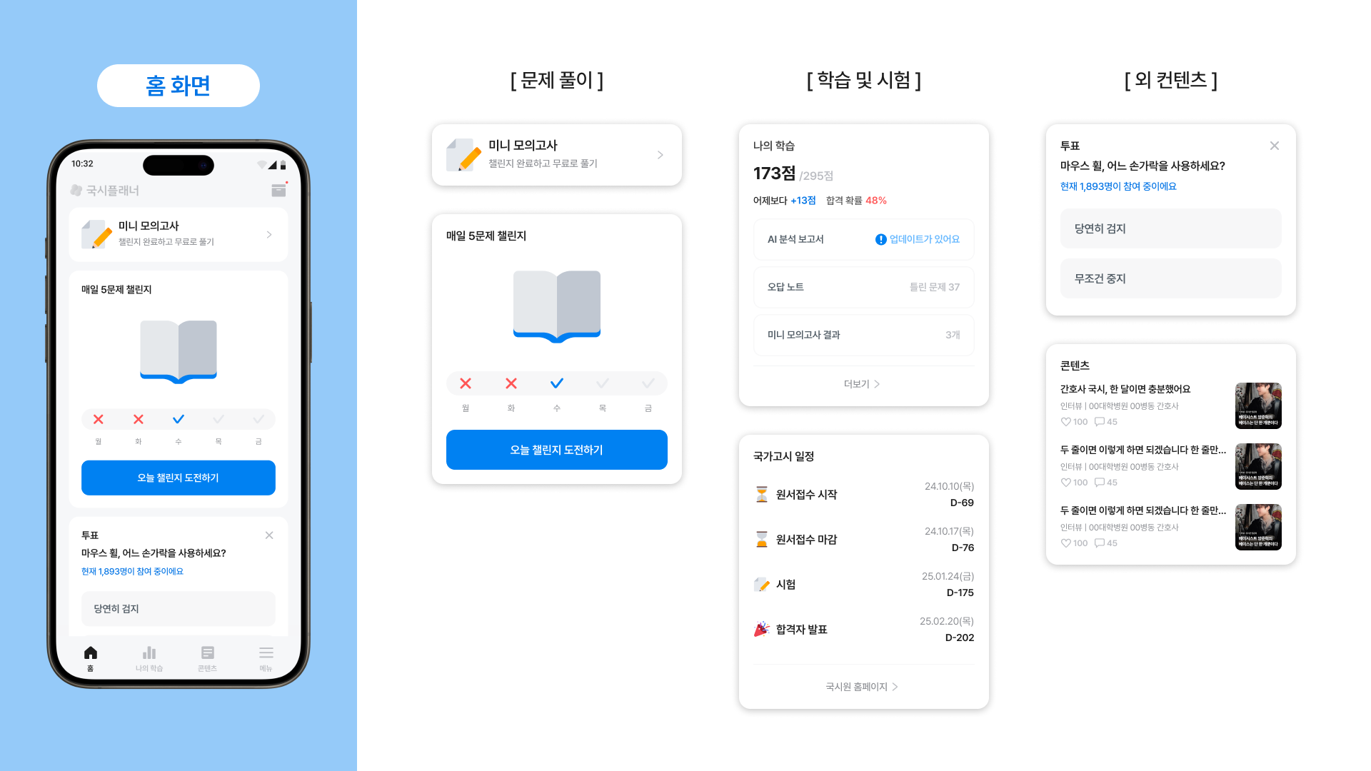 매일 챌린지와 미니모의고사를 통해 나의 실력을 분석하고, 국가고시에 꼭 합격하시길 바랄게요!